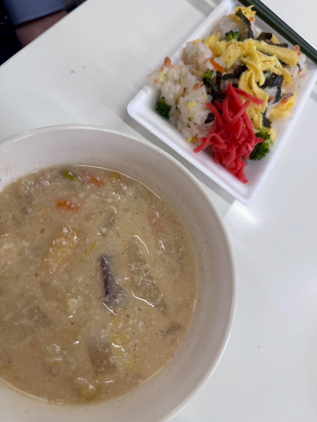 お昼ごはんは、代表の奥さん手作りのちらし寿司と豚汁、そして粕汁。